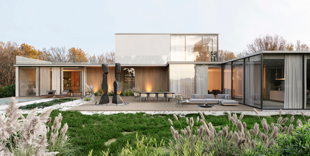 Minimalist Concept House is a private two-story house that boasts a sophisticated blend of open architecture and thoughtful planning across 200 square meters. Designed for a family who values both space and light, the house features modern, minimalist designs accentuated by large panoramic windows and cozy wooden accents. The design includes a flat roof and seamless geometric lines that enhance the sense of space and continuity.